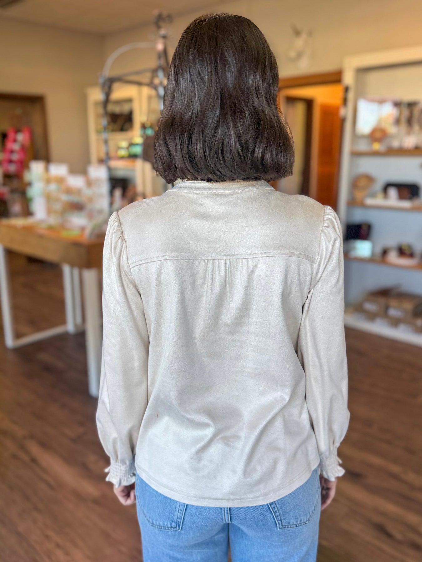 Ivory long sleeve suede top by Ivy Jane