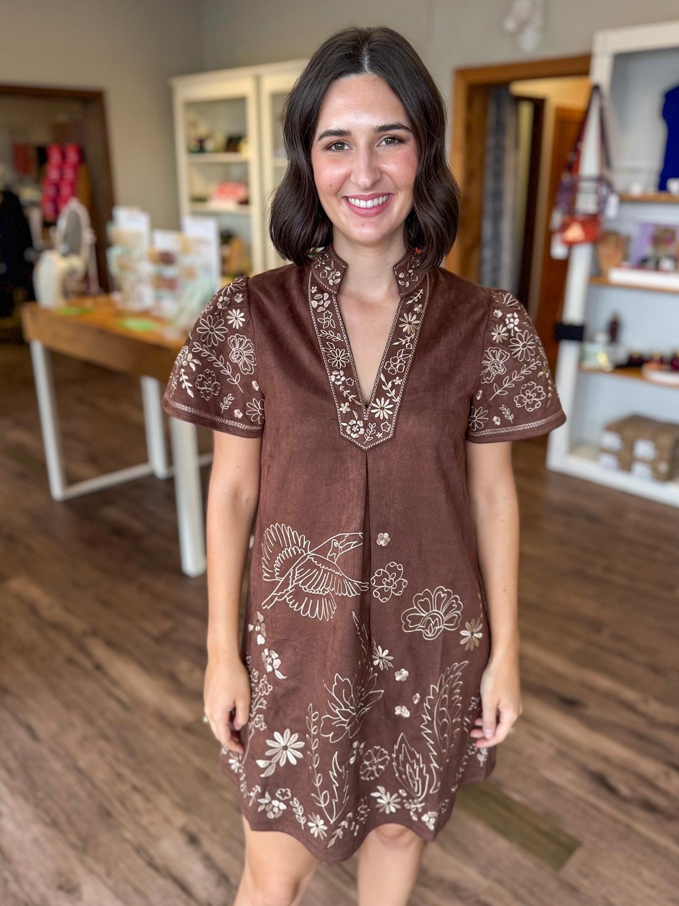 Brown Suede Embroidery Dress