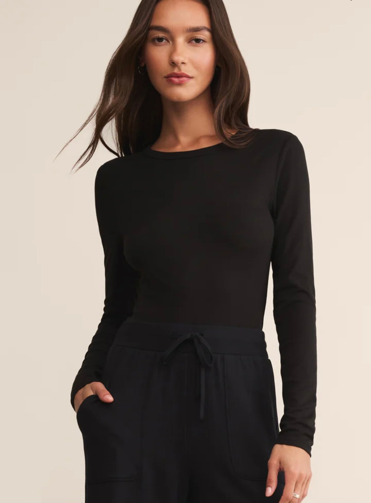 Second skin crew neck long sleeve top in black by Z Supply
