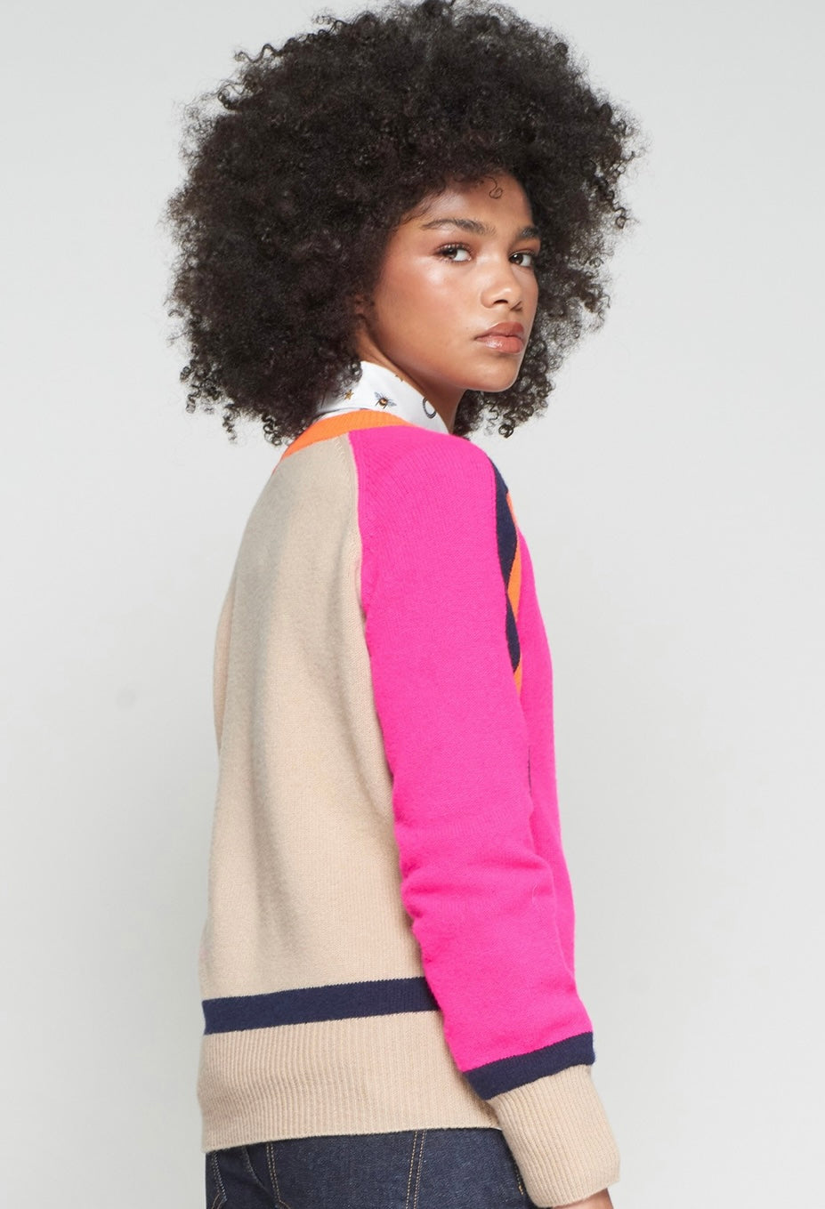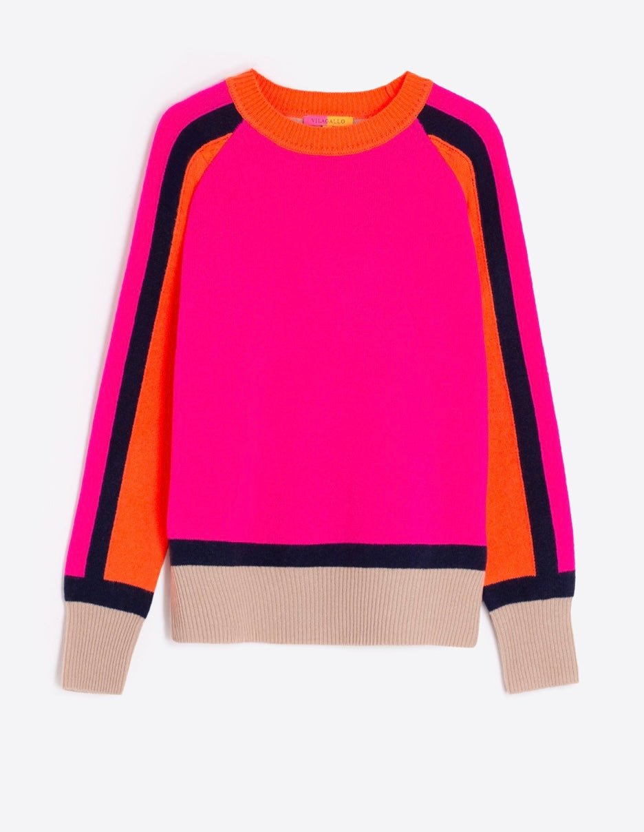 Hot pink, orange and navy Colorblock striped sweater by Vilagallo