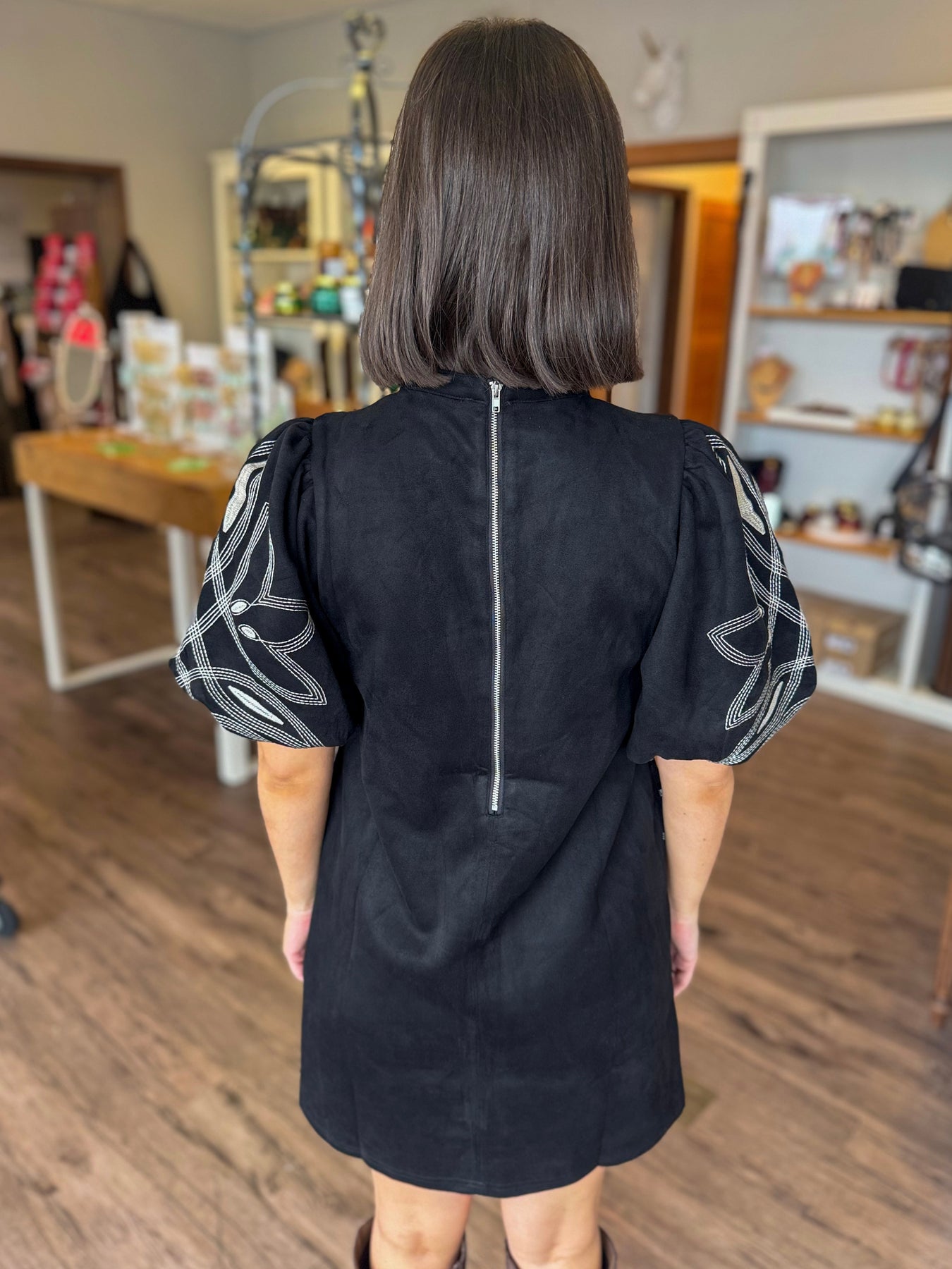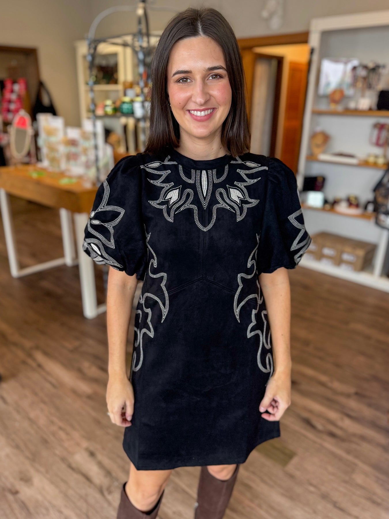 Black Suede Embroidered Dress